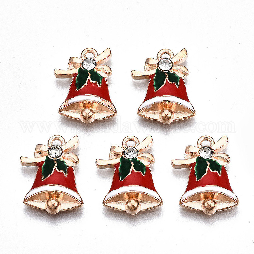 Подвески из эмали и сплава, со стразами, Рождество, без кадмия и без свинца, Рождественский колокольчик, золотой свет