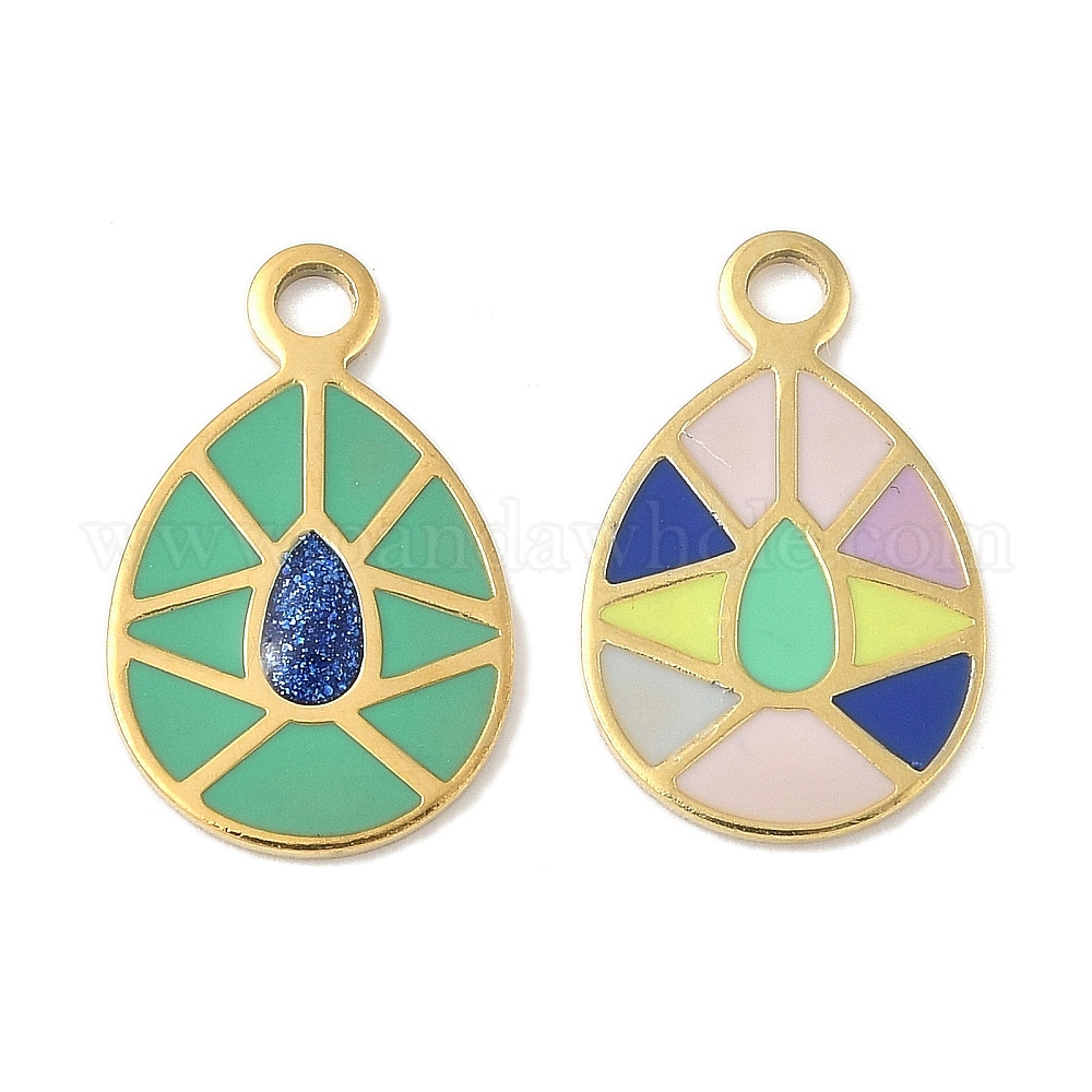• Разноцветный 304 подвески из нержавеющей стали, с эмалью, слезинки, реальный 14 k позолоченный, красочный, 17x10.5x1 мм, отверстие : 1.8 мм