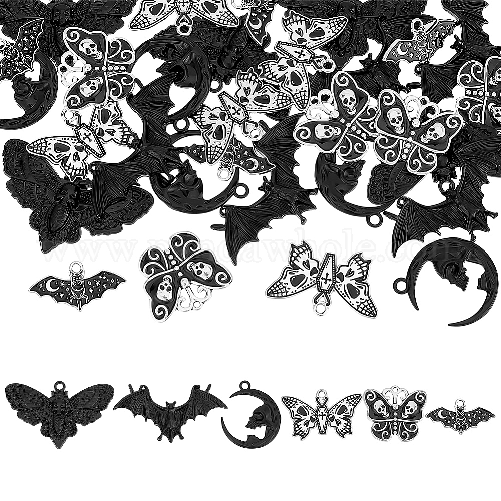 30шт 6 стили хэллоуин подвески из сплава эмали, летучая мышь и луна и мотылек и бабочка