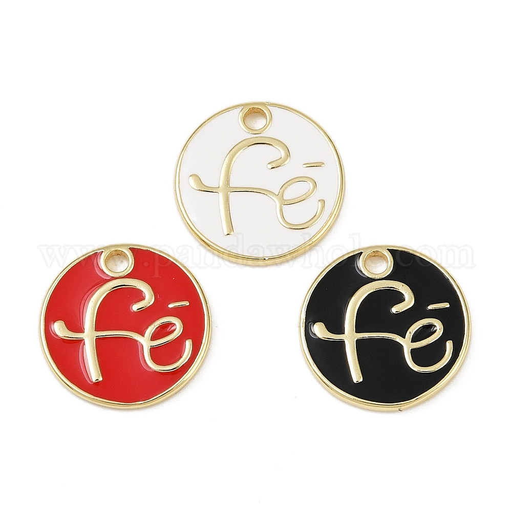 Латунь эмаль прелести, плоский круглый со словом fe charm, без свинца и без кадмия, долговечный, стойки покрытие, реальный 18 k позолоченный
