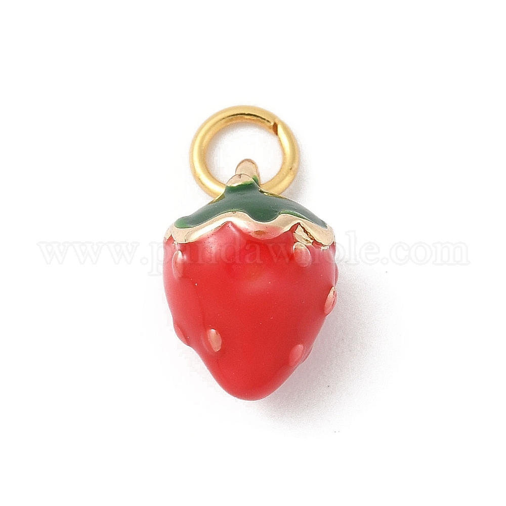 • Золотой Латунь эмаль прелести, с целью перехода в кольце, клубничное очарование, золотые, 11.5x8 мм, отверстие : 3.4 мм