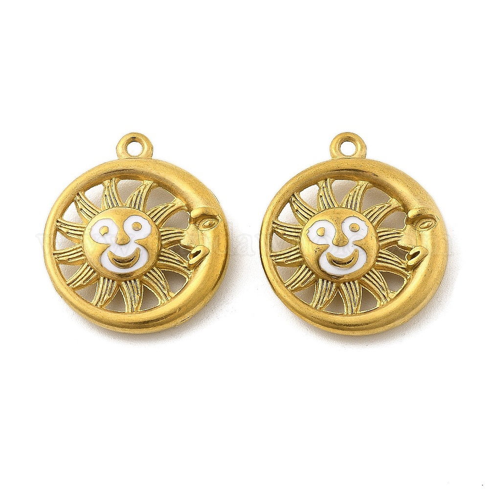 • Настоящее золото 18K 304 подвески из нержавеющей стали, с эмалью, очарование солнца, ионное покрытие (ip), реальный 18 k позолоченный, 21x18x4.5 мм, отверстие : 1.4 мм