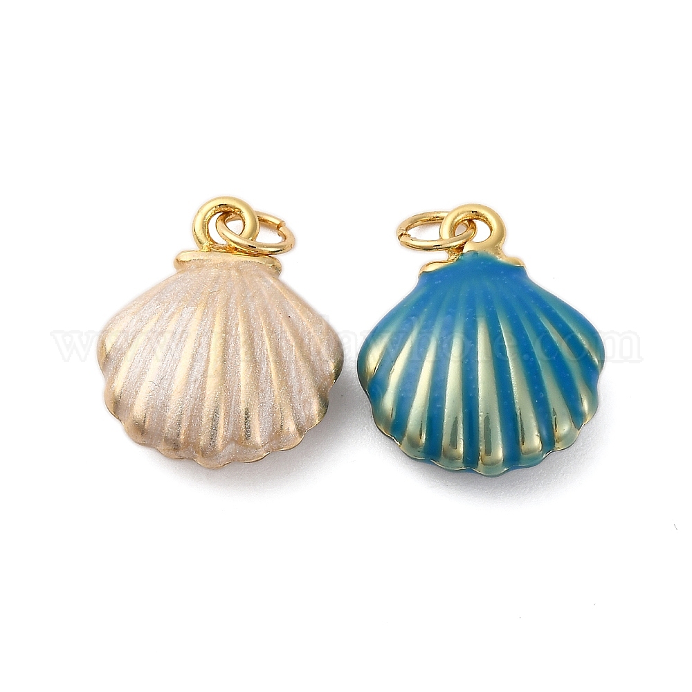 Латунь эмаль подвески, стойки покрытие, долговечный, с целью перехода в кольце, без кадмия и без свинца, шарм в форме ракушки, реальный 18 k позолоченный