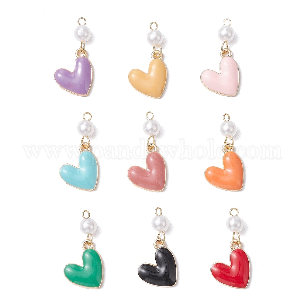 Подвески из эмали и сплава, с абс пластмассовыми жемчужными бисером, сердце