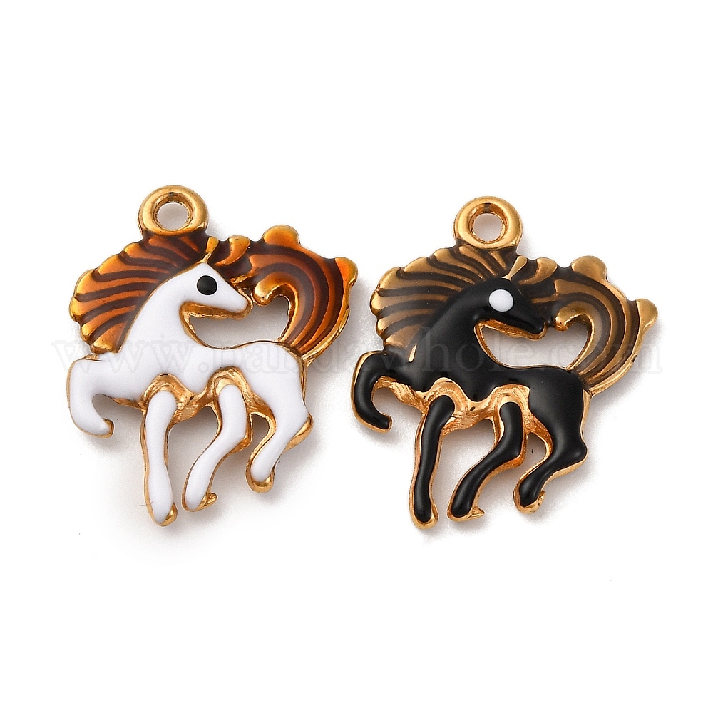 • Черный 304 нержавеющей стальной эмали подвески, лошадь очарование, золотые, чёрные, 20x17x2.5 мм, отверстие : 1.4 мм