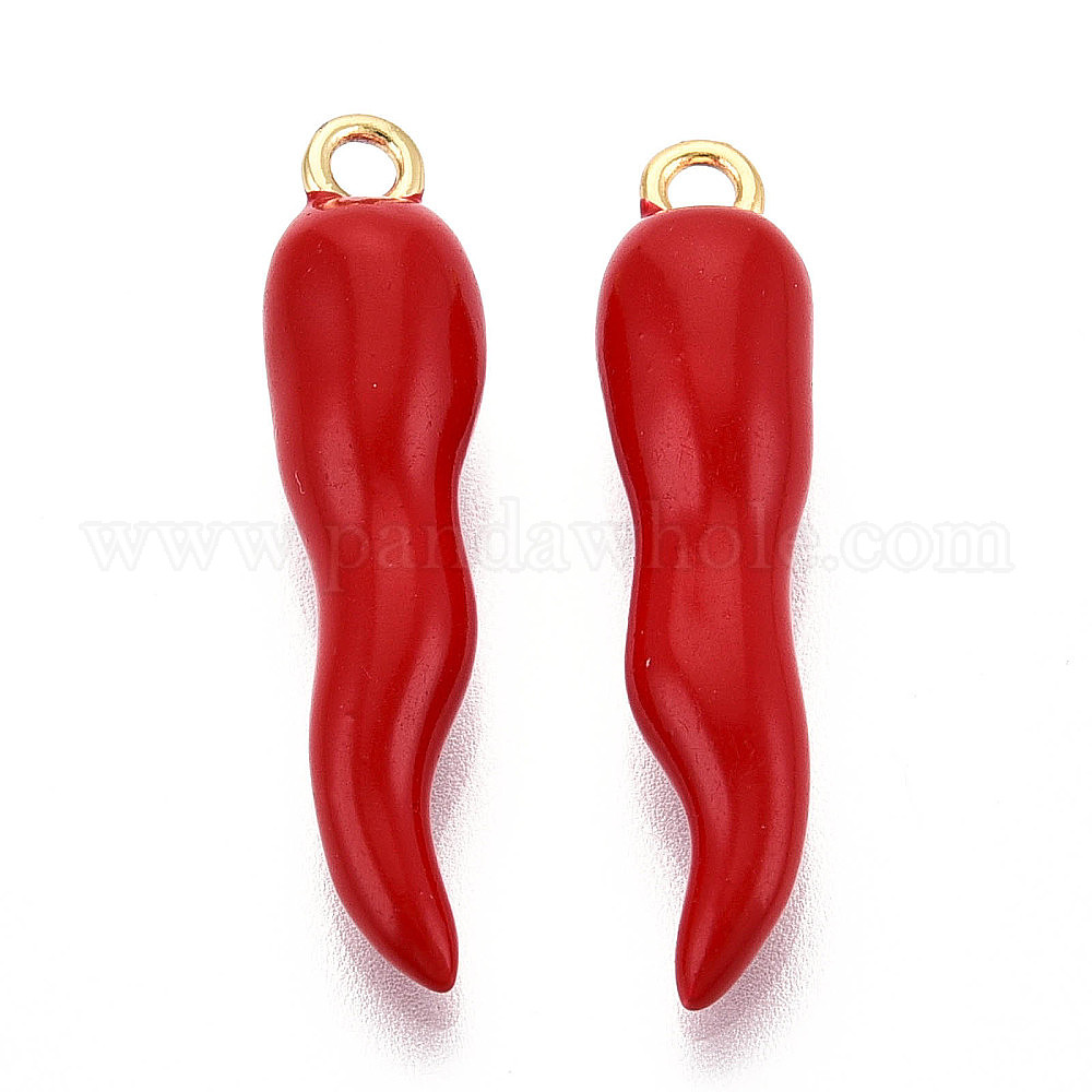 Латунь эмаль подвески, без кадмия и без свинца, реальный 18 k позолоченный, рог изобилия / итальянский рог корничелло амулеты