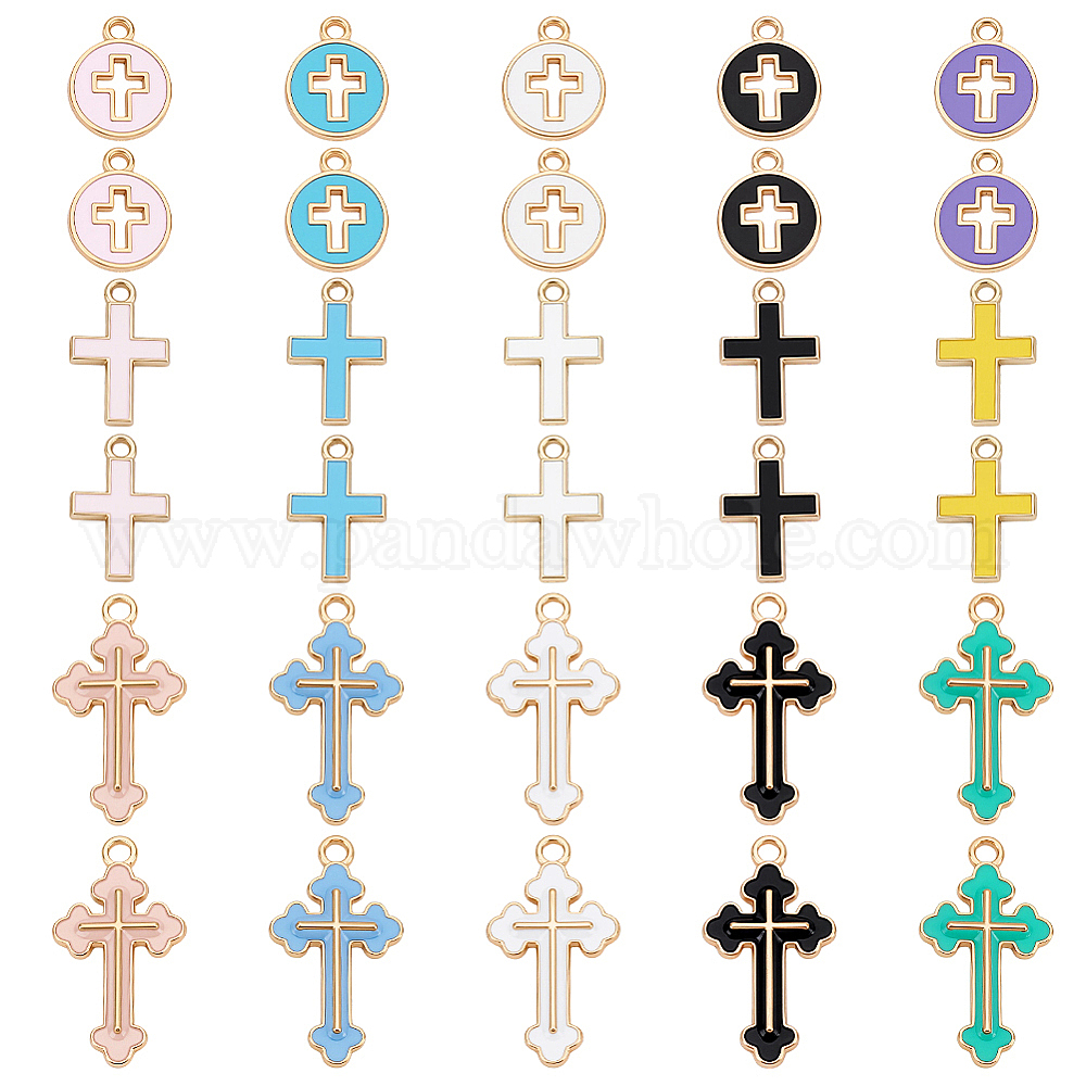 90 шт 15 стили подвески из сплава эмали, крест очарование