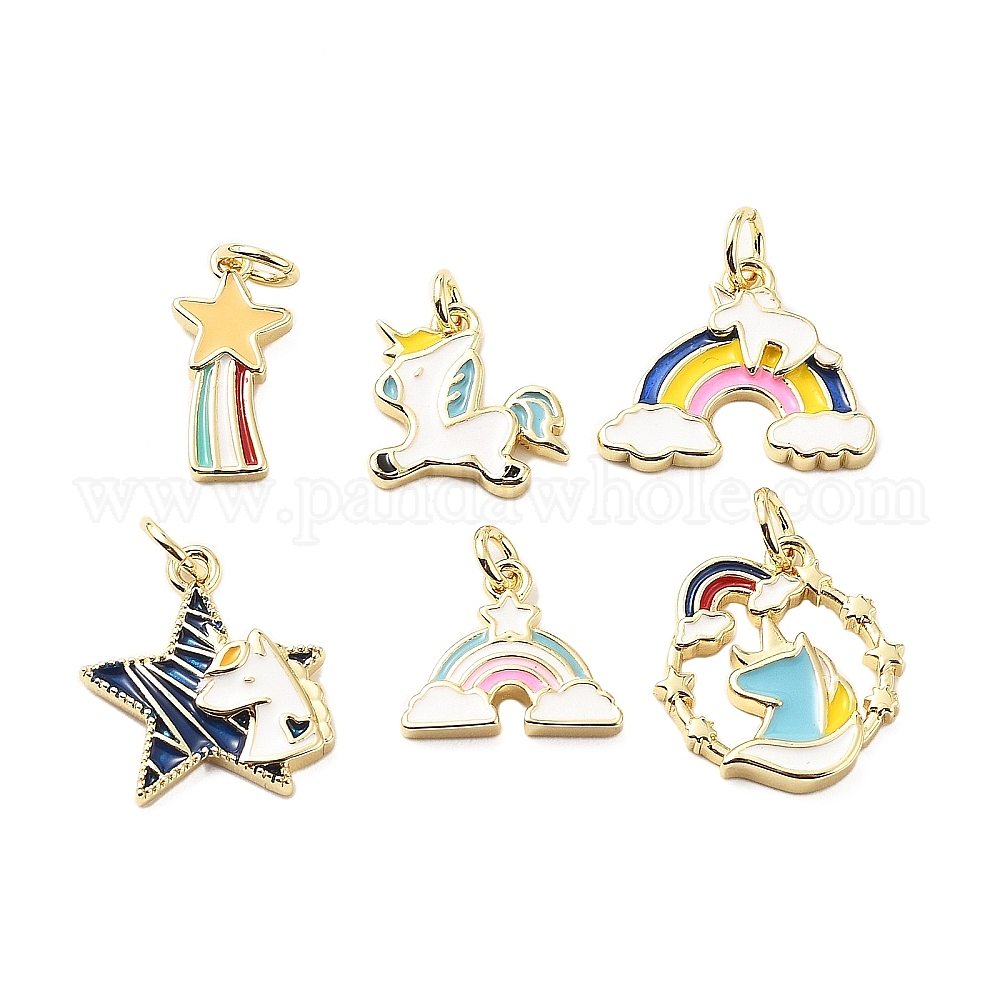 • Единорог Латунь эмаль прелести, с прыжковых колец, стойки покрытие, реальный 18 k позолоченный, без свинца и без кадмия, долговечный, единорог, 15.5x14x2 мм, отверстие : 3.3 мм