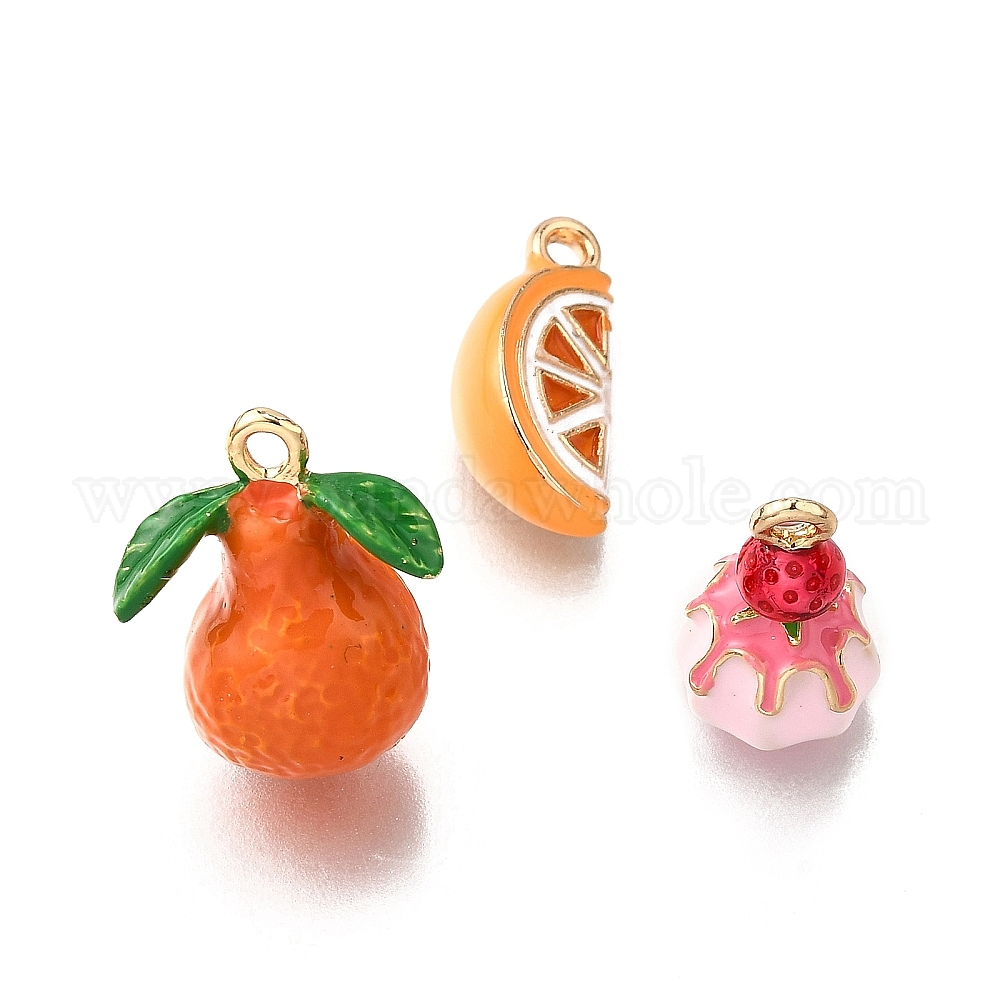 Подвески из эмали и сплава, торт и апельсиновый шарм, золотые (035285)