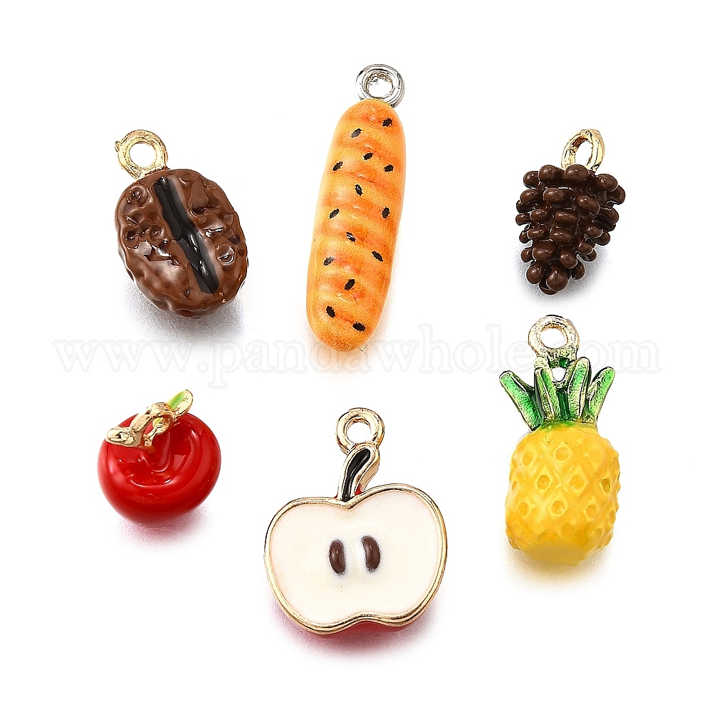 Подвески из эмали и сплава, фрукты и хлеб, золотые