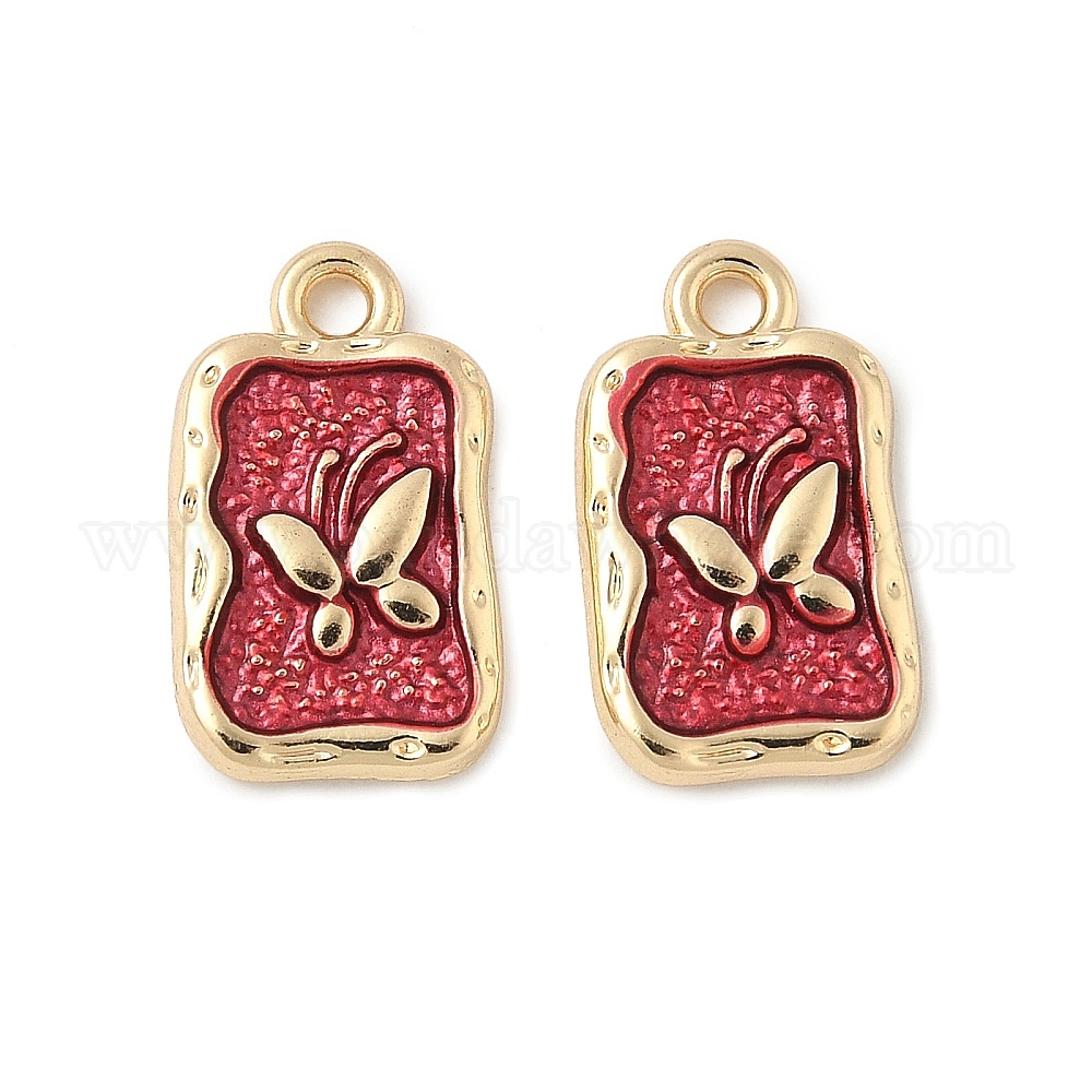 Сплав эмали прелести, прямоугольник с бабочкой-шармом, стойки покрытие, без свинца и без кадмия, золотые (0353C5)