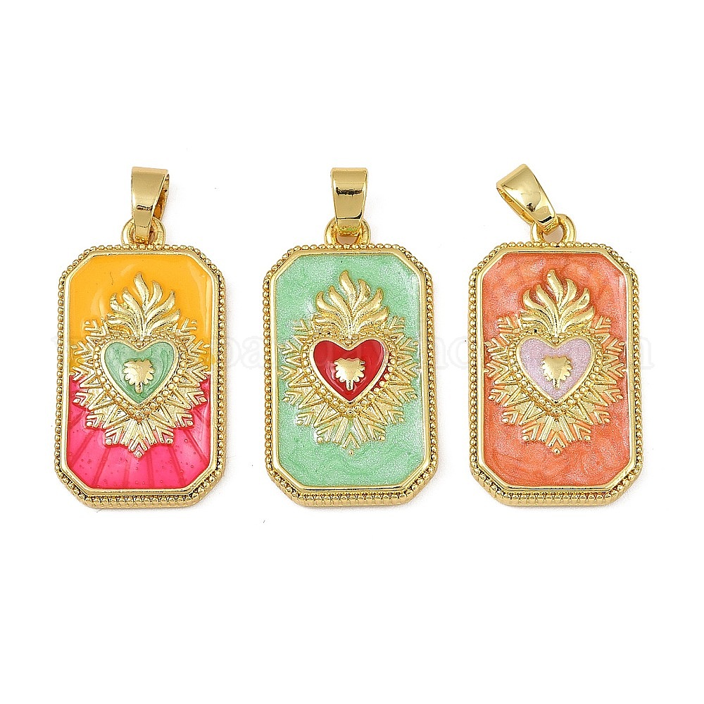 • Разноцветный Латунь эмаль подвески, долговечный, без свинца и без кадмия, стойки покрытие, золотые, прямоугольник с подвесками в виде священного сердца, красочный, 27.5x15.5x4 мм, отверстие : 5.5x3.5 мм