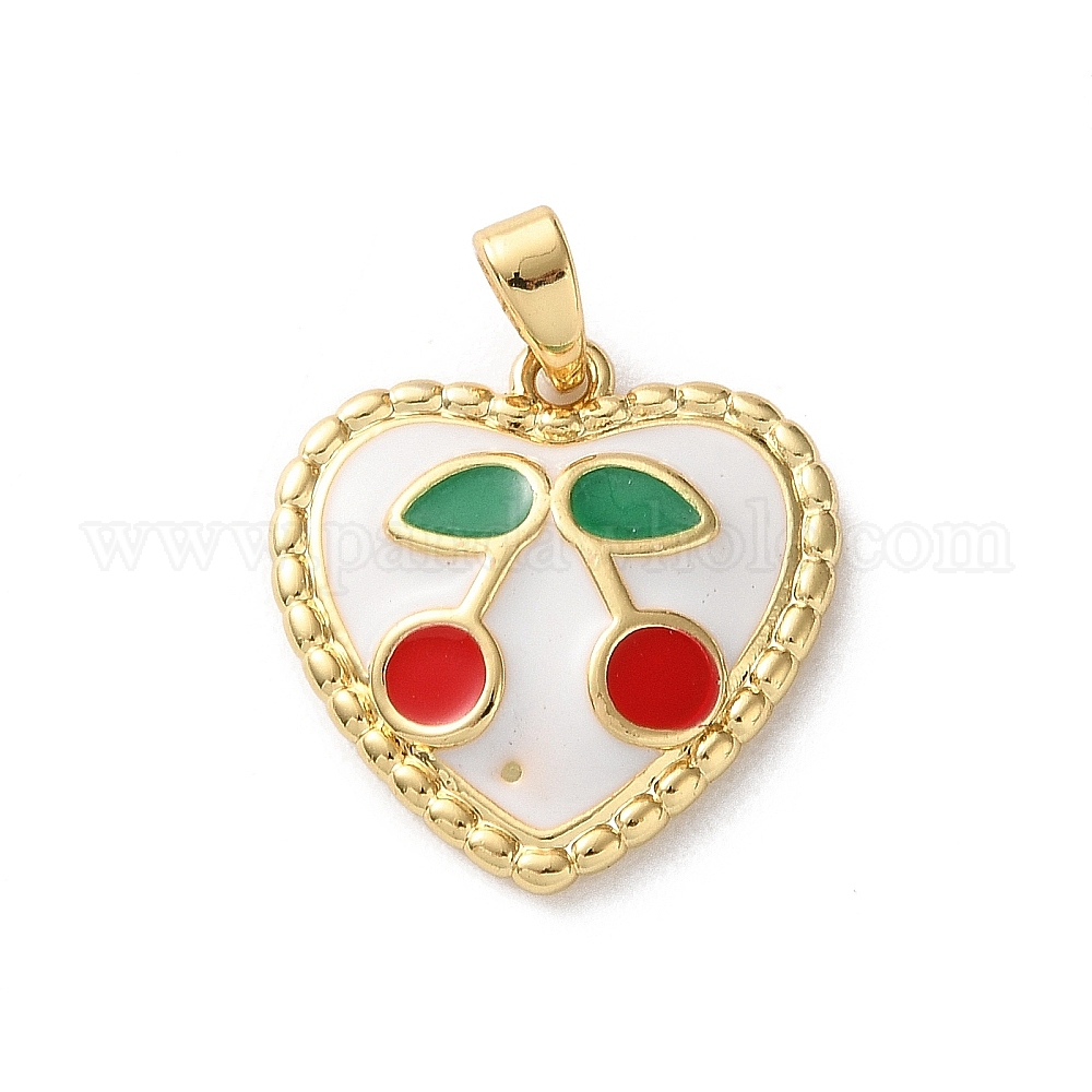 Латунь эмаль подвески, сердце с вишней