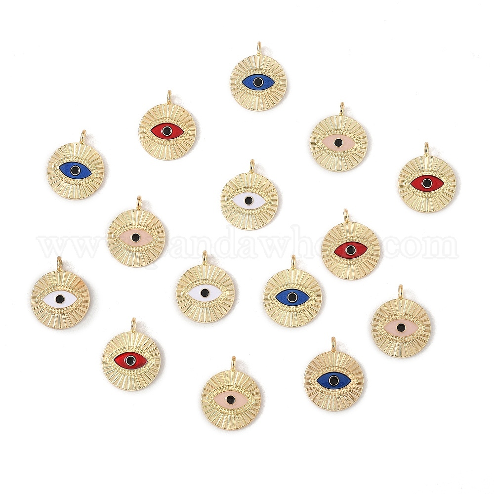 Подвески из эмали и сплава, плоские круглые с сглаза, золотые