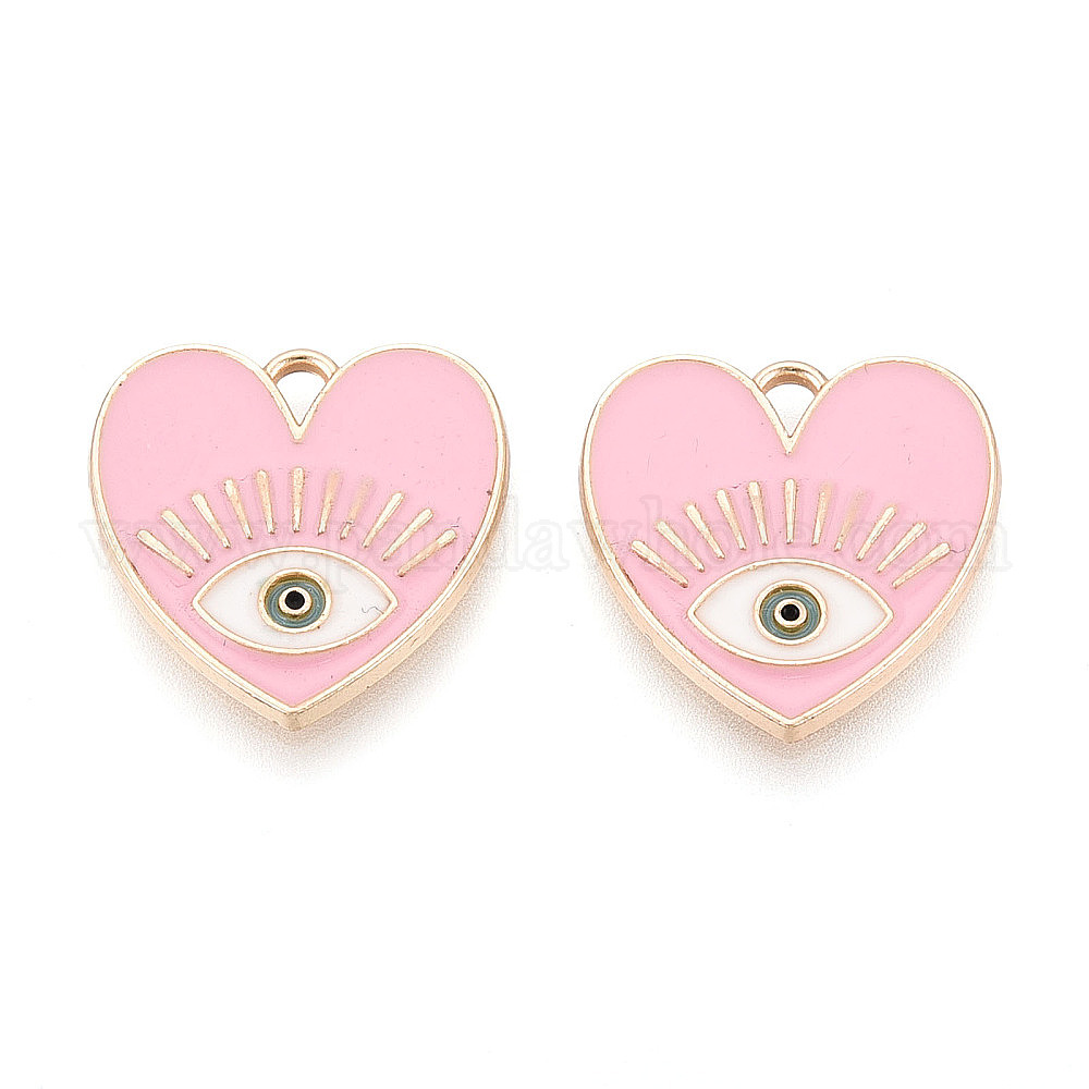 Подвески из эмали и сплава, без кадмия, без никеля и без свинца, сердце с очарованием глаз, золотой свет, стойки покрытие