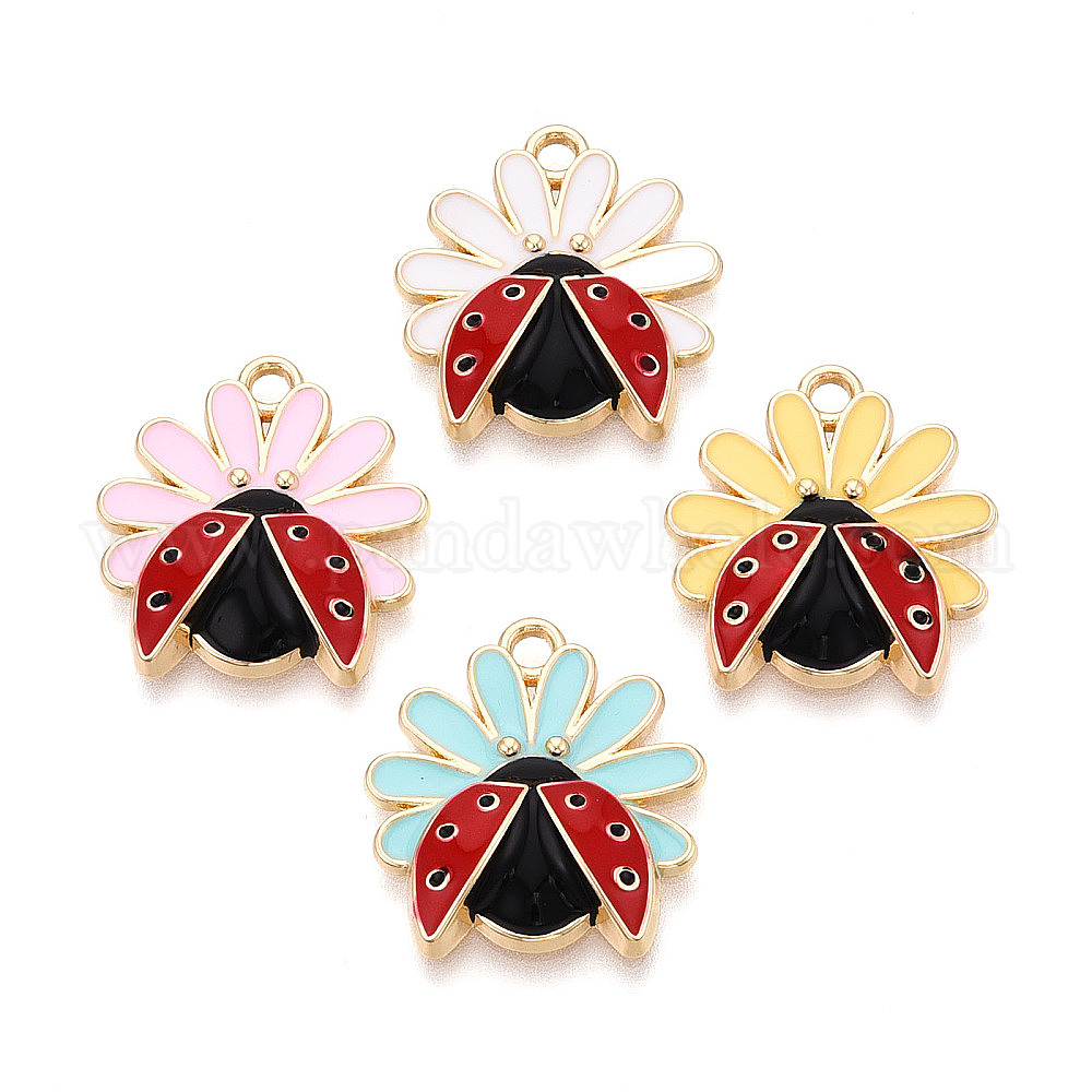 Подвески из эмали и сплава, без кадмия, без никеля и без свинца, золотой свет, подвеска в виде цветка и божьей коровки, стойки покрытие