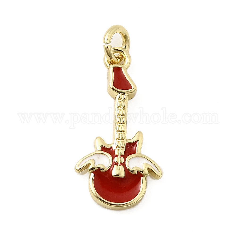 Латунь эмаль подвески, без кадмия, без никеля и без свинца, с прыжковых колец, гитара с подвесками-крыльями, реальный 18 k позолоченный