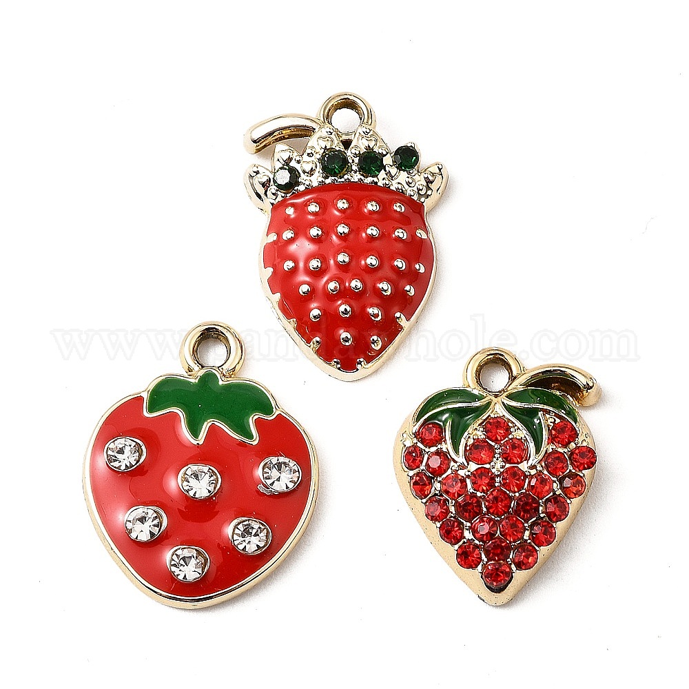 Подвески из эмали из сплава с УФ-покрытием, со стразами, клубника