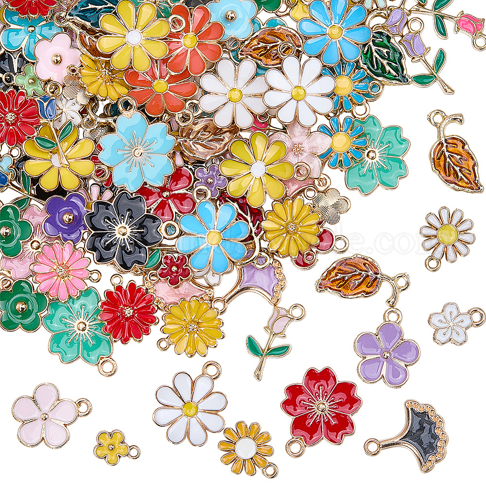 120 шт 12 стили подвески из сплава эмали, подвеска цветок/лист
