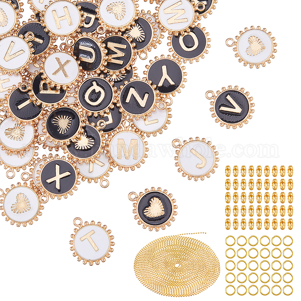 2сумки 2цветные сплавы эмалевые подвески, плоский круглый с буквой a~z подвеска, с 3m латунными шариковыми цепями и 60pcs латунными шариковыми соединителями и открытыми соединительными кольцами (03634T)