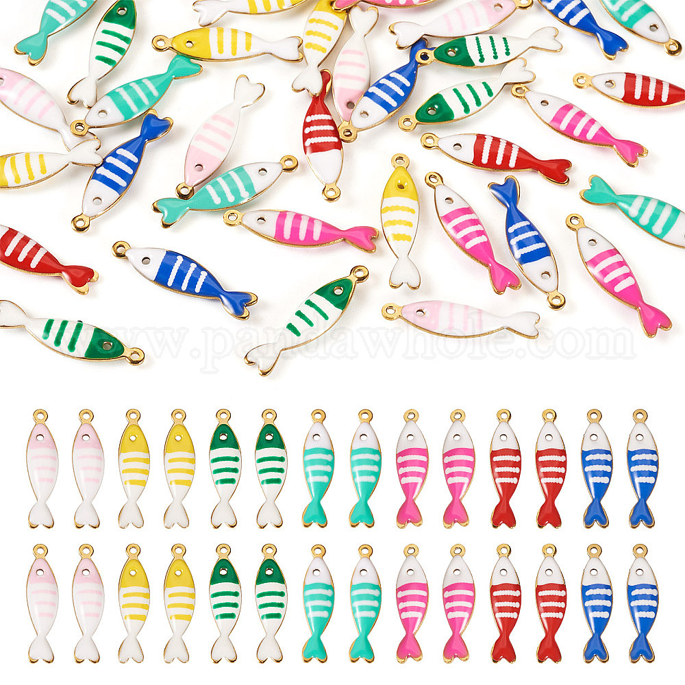 35шт. 7 цвета подвески из нержавеющей стали с эмалью, золотые, очарование рыбы