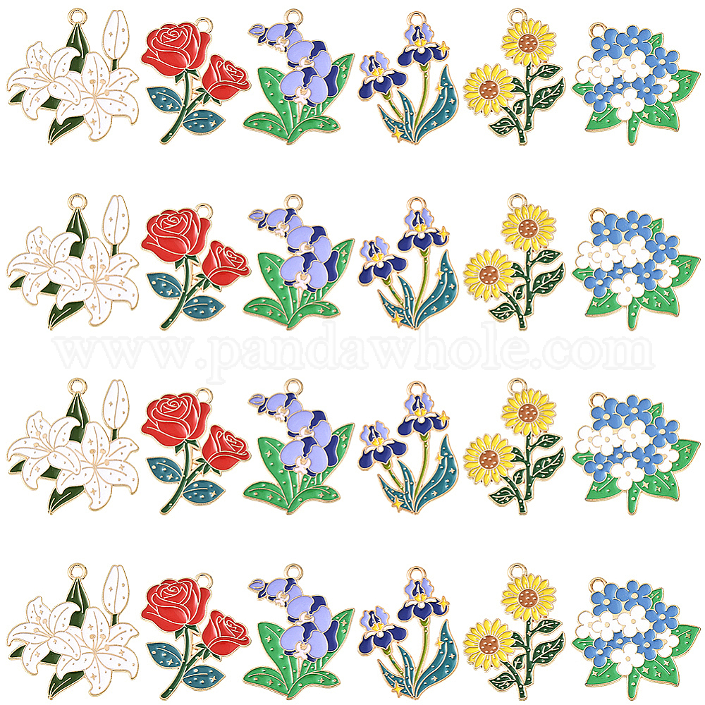 24 шт 6 стили подвески из цинкового сплава с эмалью, золотой свет, цветок