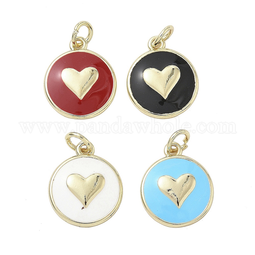 Латунь эмаль подвески, стойки покрытие, долговечный, без свинца и без кадмия, реальный 18 k позолоченный, плоский круглый с подвеской в виде сердца, с целью перехода в кольце