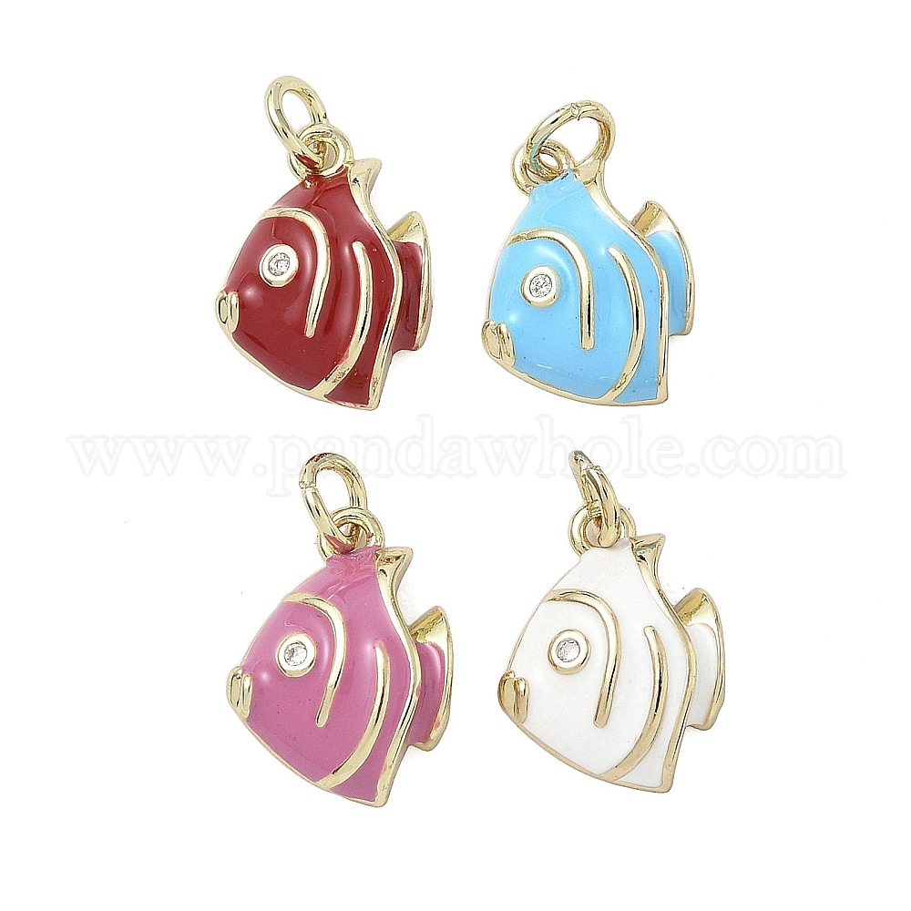 Латунь эмаль подвески, стойки покрытие, долговечный, без свинца и без кадмия, реальный 18 k позолоченный, очарование рыбы, с целью перехода в кольце