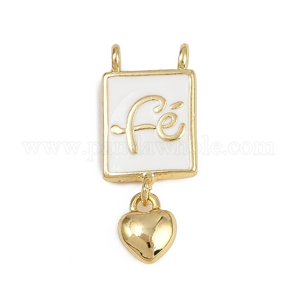 • Белый Латунь эмаль подвески, прямоугольник с подвеской в виде слова и сердца, без кадмия и без свинца, реальный 18 k позолоченный, белые, 23x10x3 мм, отверстие : 1.4 мм