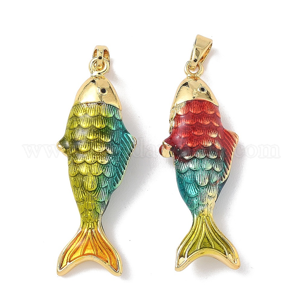 Латунь эмаль подвески, рыбы прелести, золотые