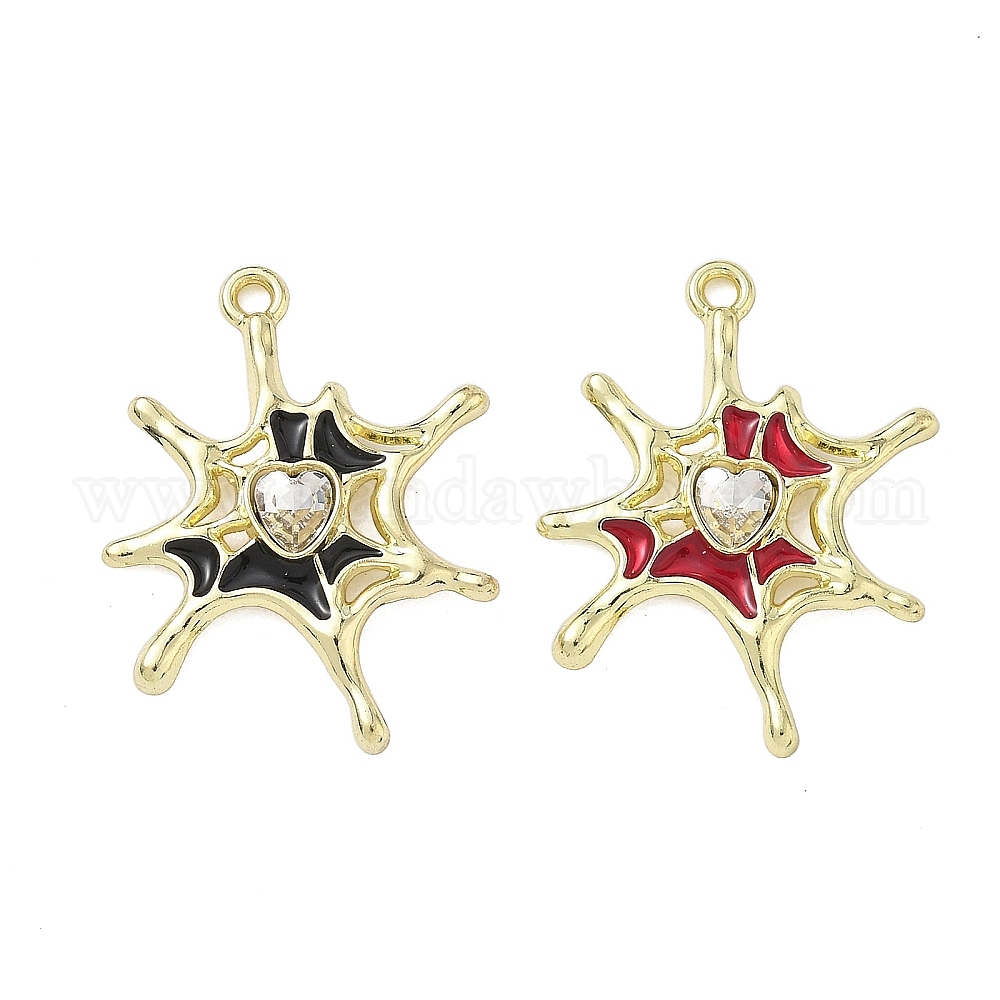 Подвески из сплава со стразами на Хэллоуин, Эмаль стиле, паутины, золотые