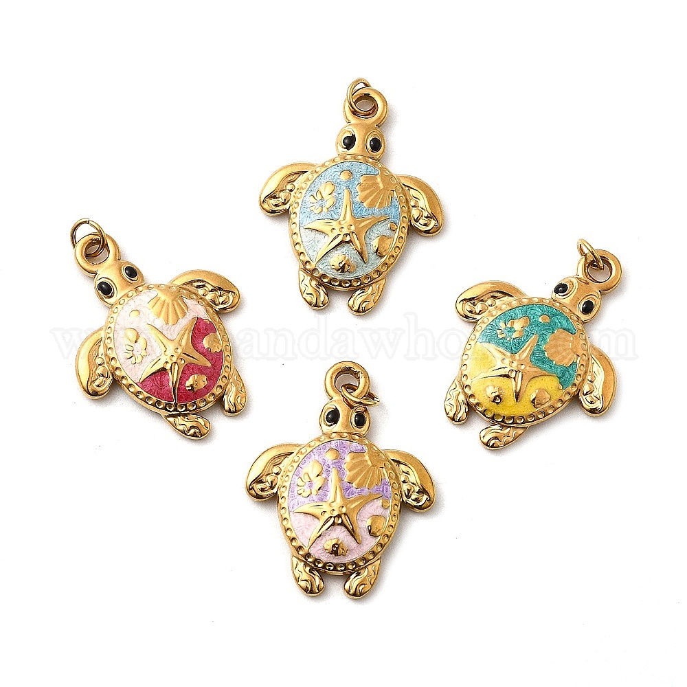 304 нержавеющей стальной эмали подвески, прелести черепахи, ионное покрытие (ip), реальный 18 k позолоченный, с целью перехода в кольце