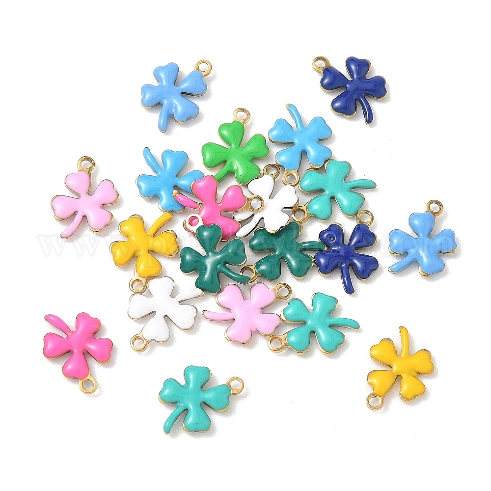 201 из нержавеющей стали шармы эмали, клевер очарование, золотые