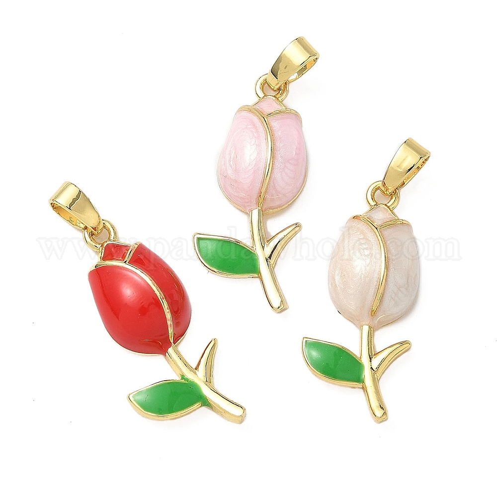 Латунь эмаль подвески, очарование розы, реальный 18 k позолоченный (036AG4)