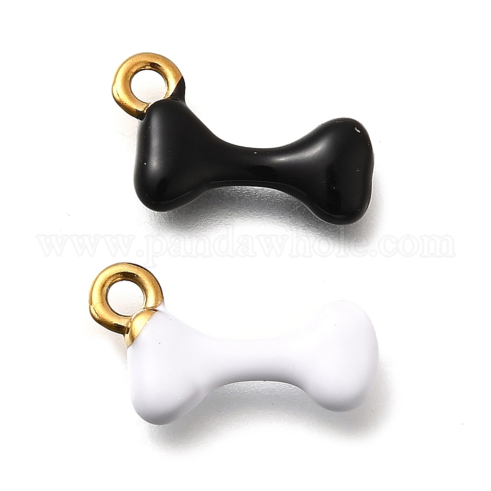 • Черный 304 нержавеющей стальной эмали подвески, костяные амулеты, золотые, чёрные, 15.5x10x3 мм, отверстие : 2 мм