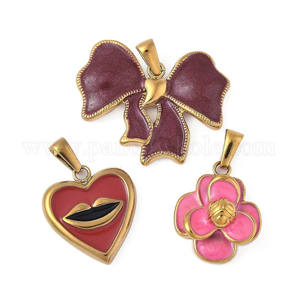 • Сердце 304 нержавеющей стальной эмали подвески, золотые, сердце с губой, 22.5x20.5x3.5 мм, отверстие : 7.5x3 мм