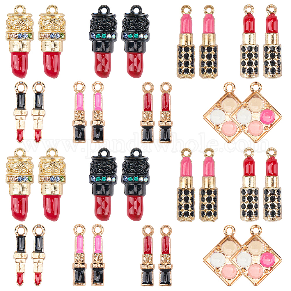 32 шт 8 стили подвески из сплава эмали, подвески для макияжа, со стразами, смешанный помада
