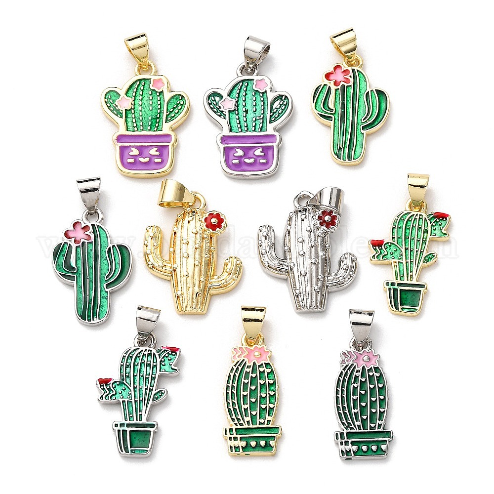 Латунь эмаль подвески, кактус (036HPW)