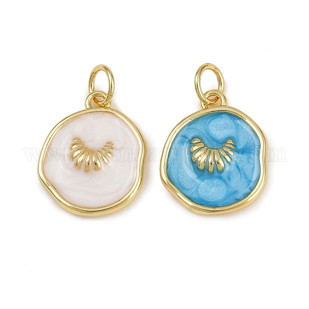 Латунь эмаль подвески, плоско-круглые, реальный 18 k позолоченный, стойки покрытие, долговечный, без кадмия и без свинца, с целью перехода в кольце