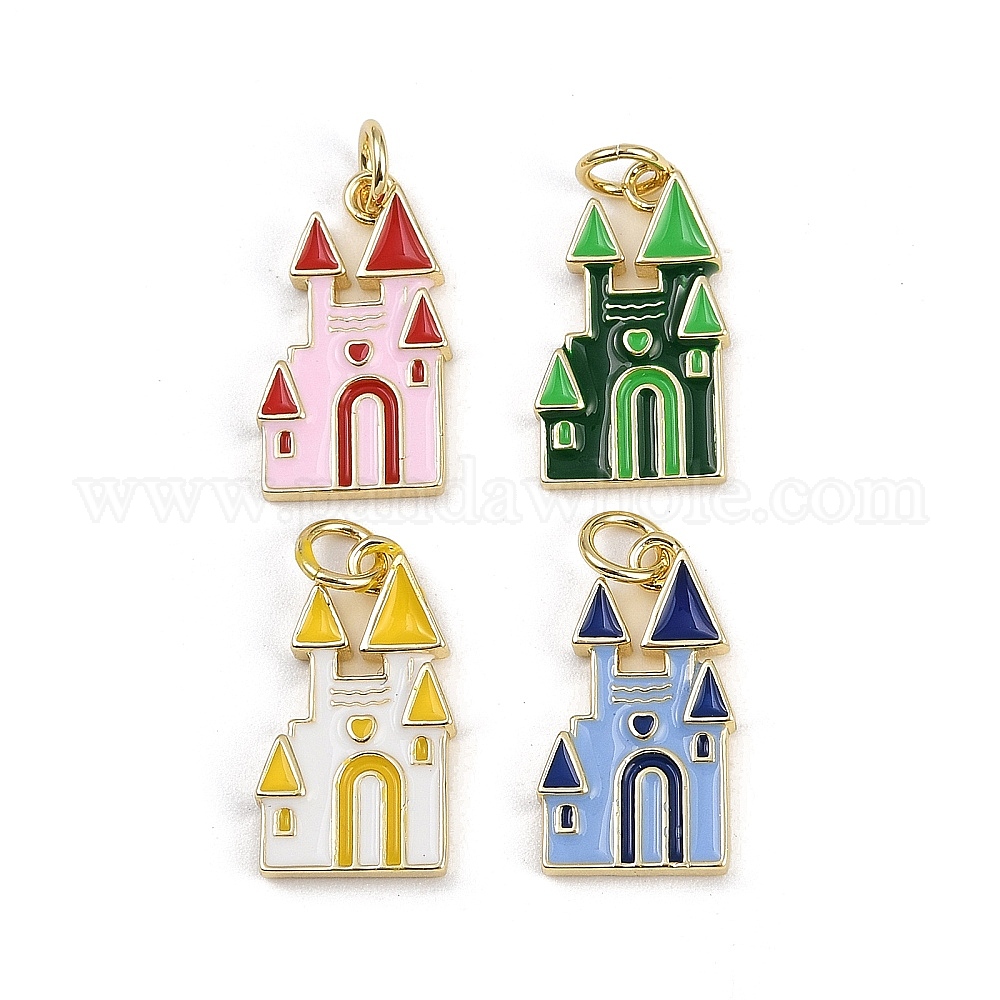 Латунь эмаль подвески, прелести замка, реальный 18 k позолоченный, стойки покрытие, долговечный, без кадмия и без свинца, с прыжковых колец