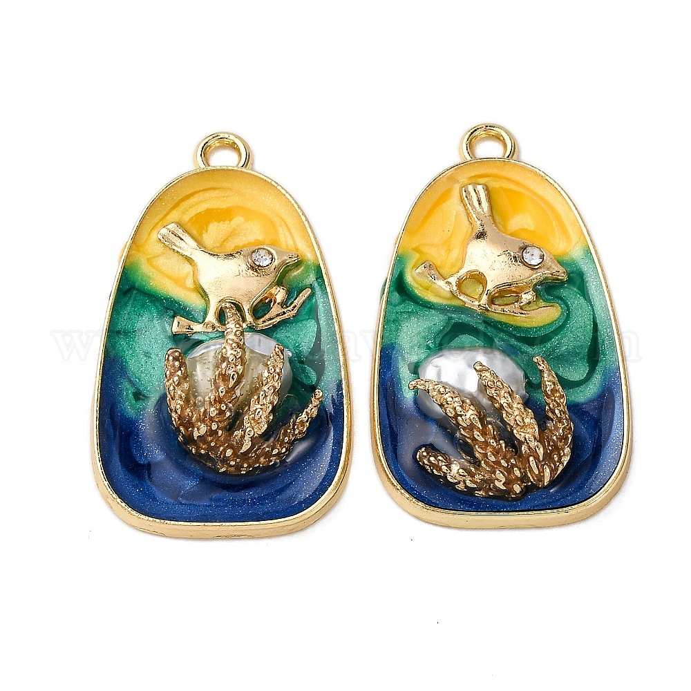Подвески из эмалевого сплава легкого золота, поля и амулеты в форме птиц, с ABS имитации жемчуга, стойки покрытие