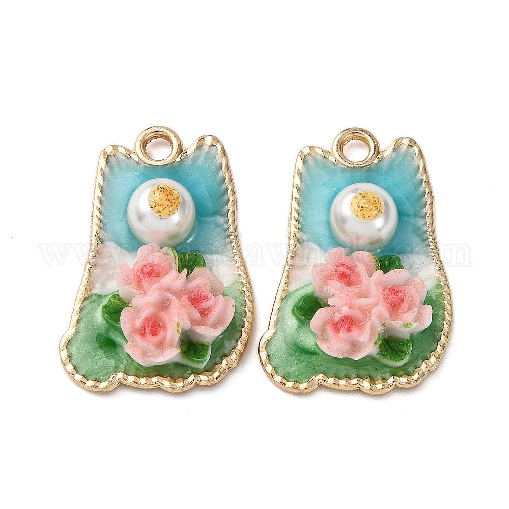 Подвески из эмалевого сплава легкого золота, подвески из смоляных цветов, с имитацией АБС-жемчуга и блестящей пудрой, стойки покрытие