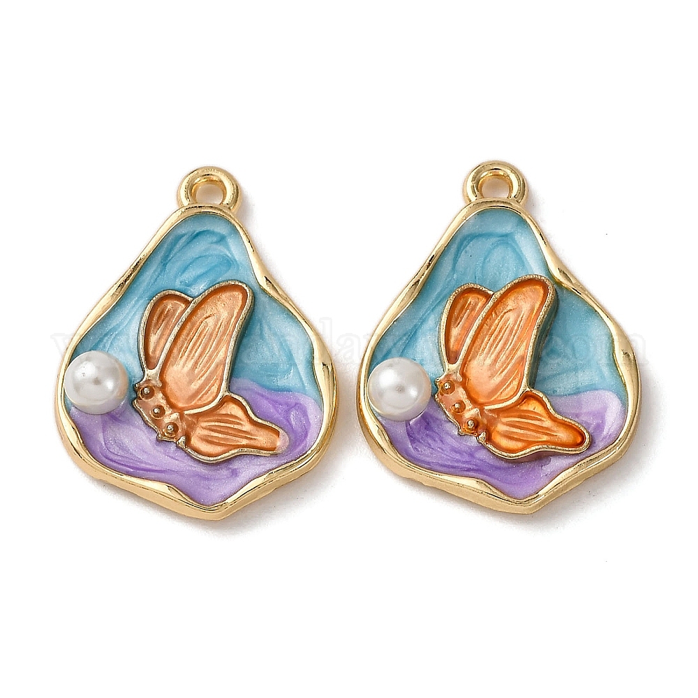 Подвески из эмали и сплава, с ABS имитации жемчуга, бабочки прелести, стойки покрытие, золотой свет