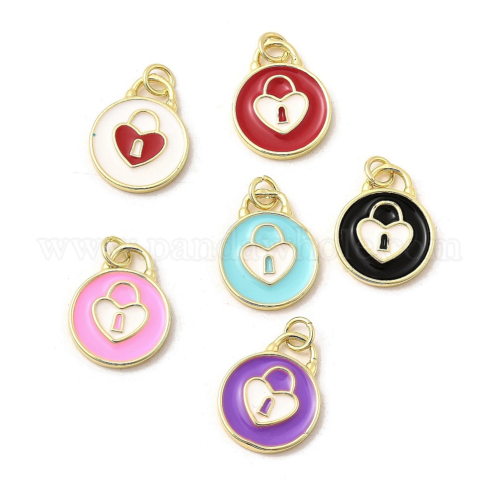 Латунь эмаль подвески, плоский круглый с подвесками-замками, реальный 18 k позолоченный, с целью перехода в кольце, без свинца и без кадмия, долговечный, стойки покрытие
