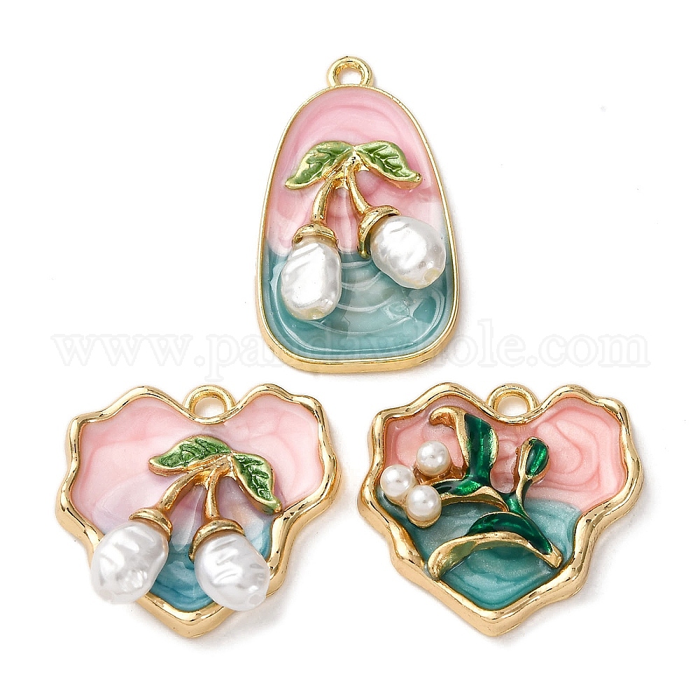 Подвески из эмалевого сплава легкого золота, подвески вишневые/цветочные, с ABS имитации жемчуга, стойки покрытие