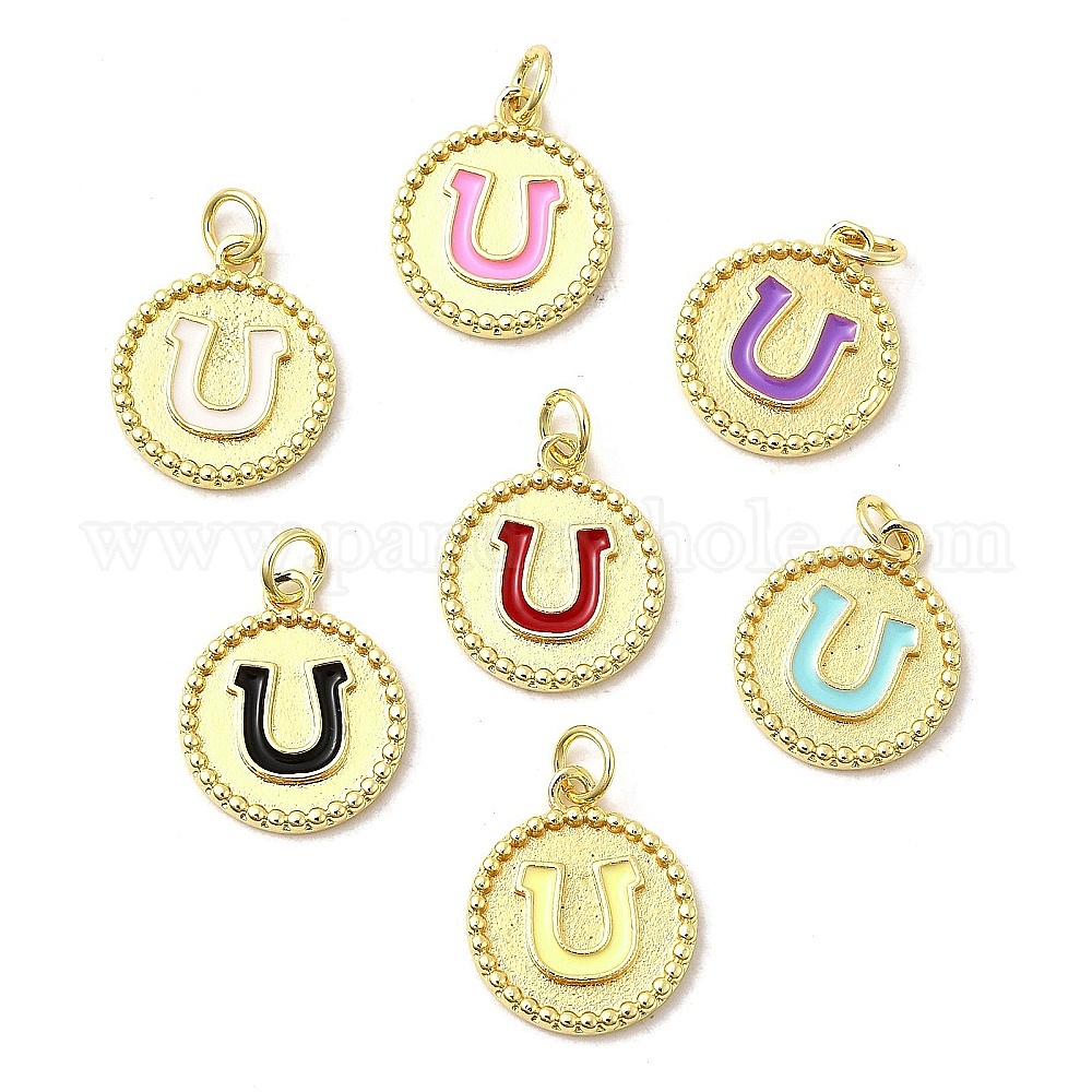Латунь эмаль подвески, плоские круглые подвески с подковами, реальный 18 k позолоченный, с целью перехода в кольце, без свинца и без кадмия, долговечный, стойки покрытие