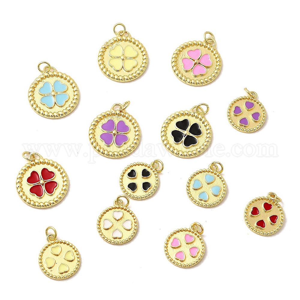 Латунь эмаль подвески, плоские круглые подвески с прыгающими кольцами, без свинца и без кадмия, долговечный, стойки покрытие, реальный 18 k позолоченный