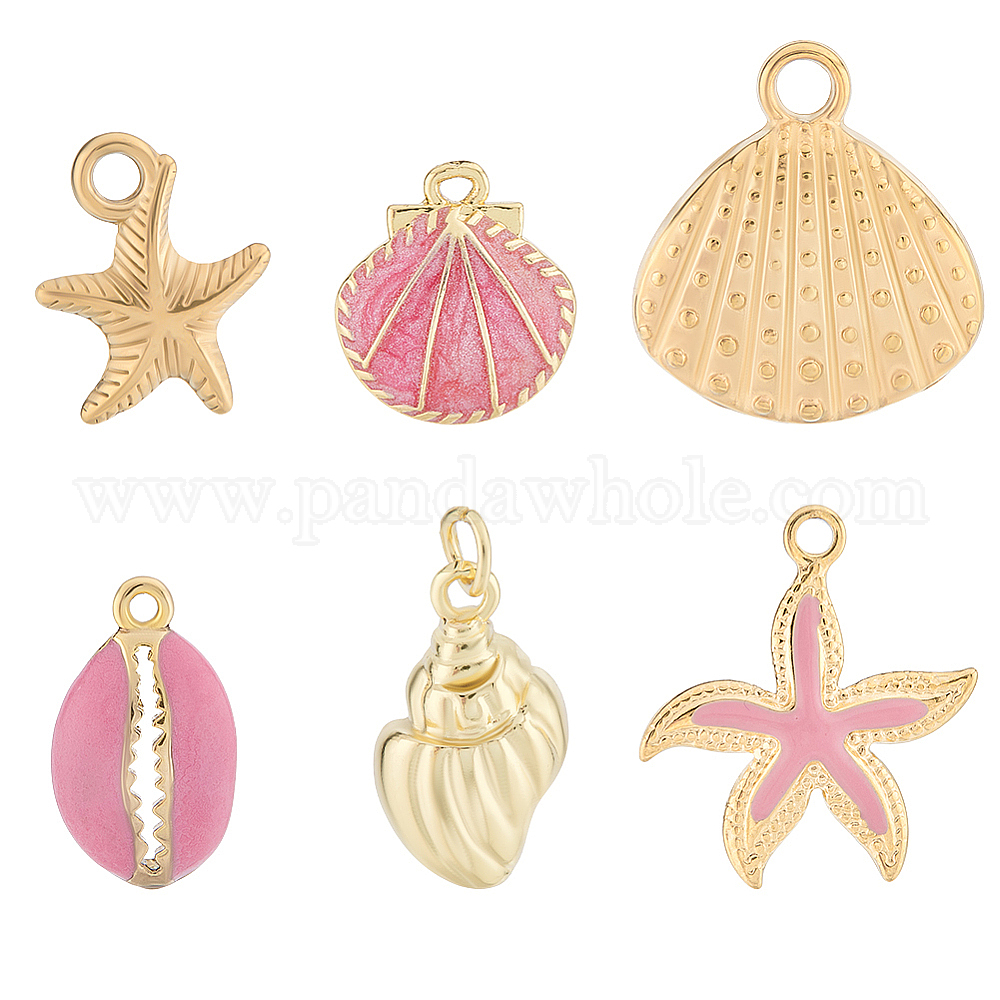 • Pink 12 шт. 6 стили стойка покрытие латунь эмаль подвески, разнообразные, розовые, 13~25x9~22x3~4.5 мм, отверстие : 1.2~3.2 мм, 2 шт / стиль