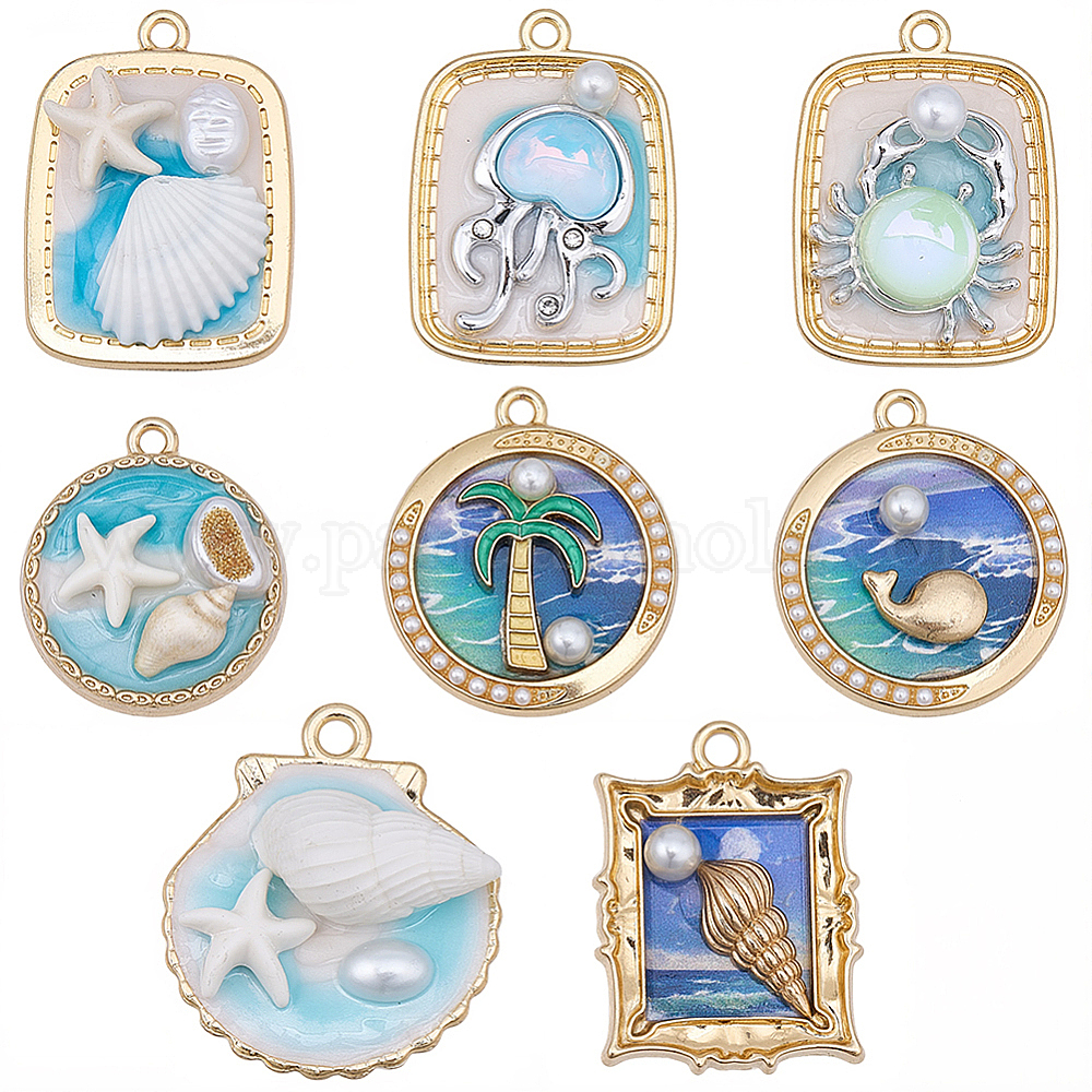 8 шт 8 стили подвески из сплава эмали, с имитацией жемчуга ABS и стеклом, стойки покрытие