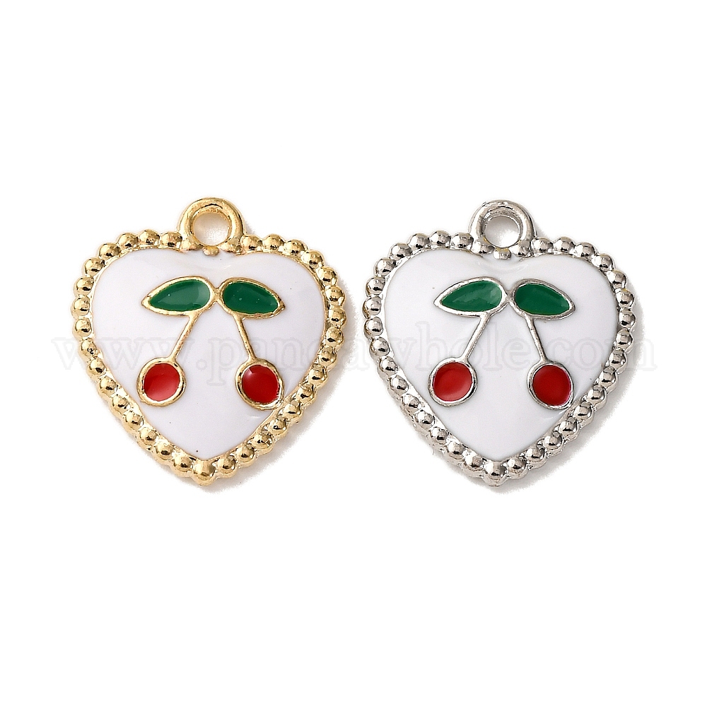 Подвески из эмали и сплава, сердце с вишневым шармом